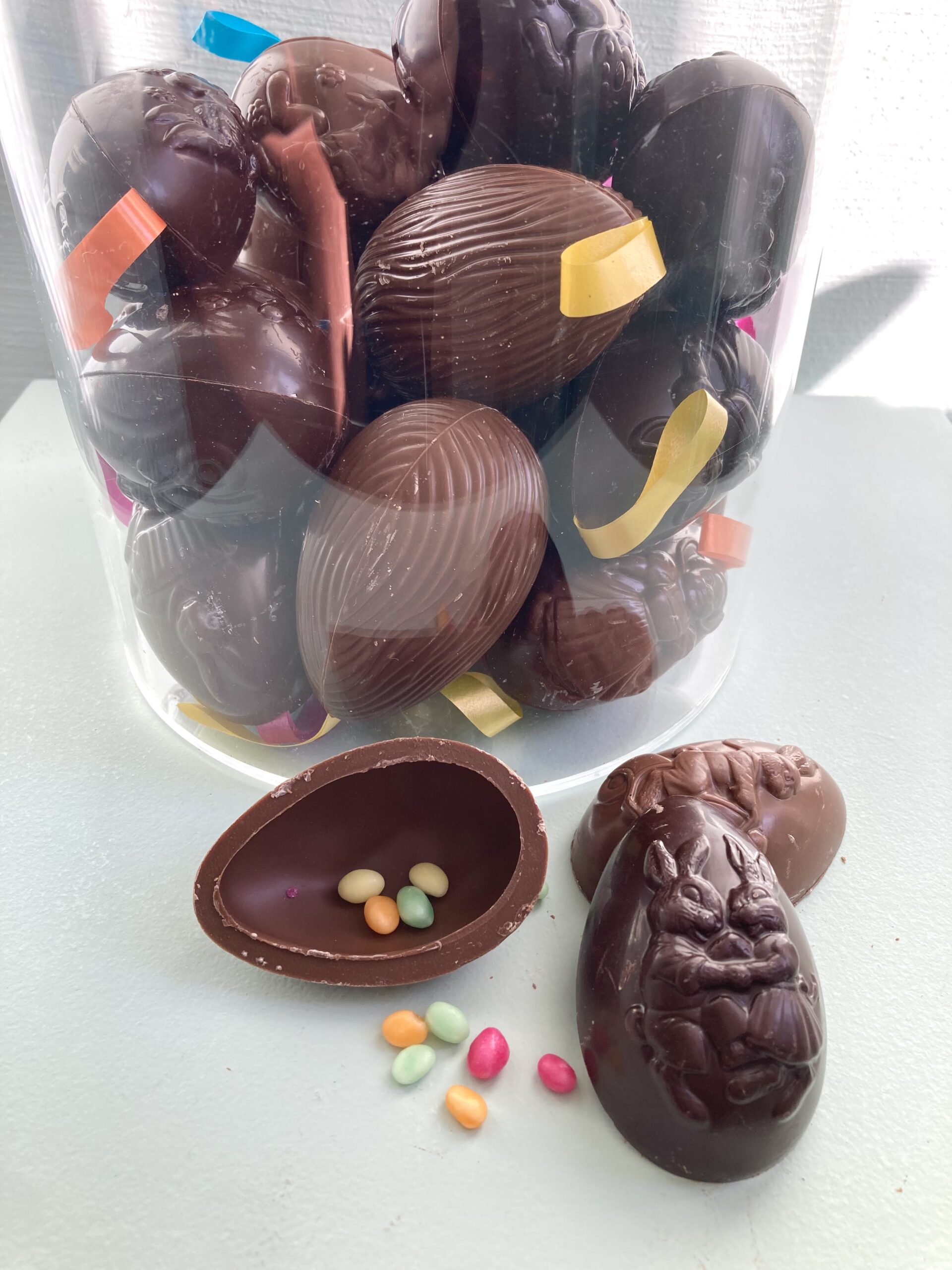 Holle eieren gevuld rammeleitjes binnenin